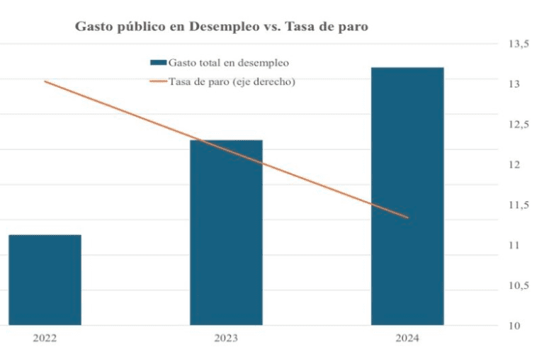 España gasta más en ayudas al desempleo pese a reducir su tasa de paro, reflejando un sistema que fomenta la