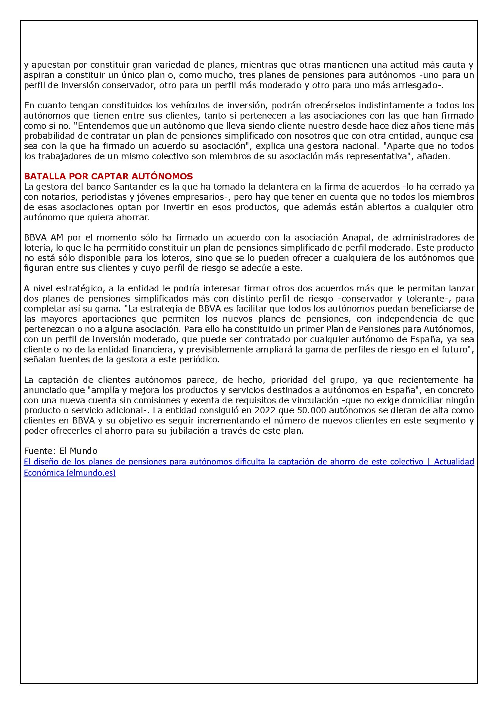 La captación de clientes autónomos parece, de hecho, prioridad del grupo, ya que recientemente ha anunciado que «amplía y mejora los productos y servicios destinados a autónomos en España», en concreto con una nueva cuenta sin comisiones y exenta de requisitos de vinculación -que no exige domiciliar ningún producto o servicio adicional-. La entidad consiguió en 2022 que 50.000 autónomos se dieran de alta como clientes en BBVA y su objetivo es seguir incrementando el número de nuevos clientes en este segmento y poder ofrecerles el ahorro para su jubilación a través de este plan.