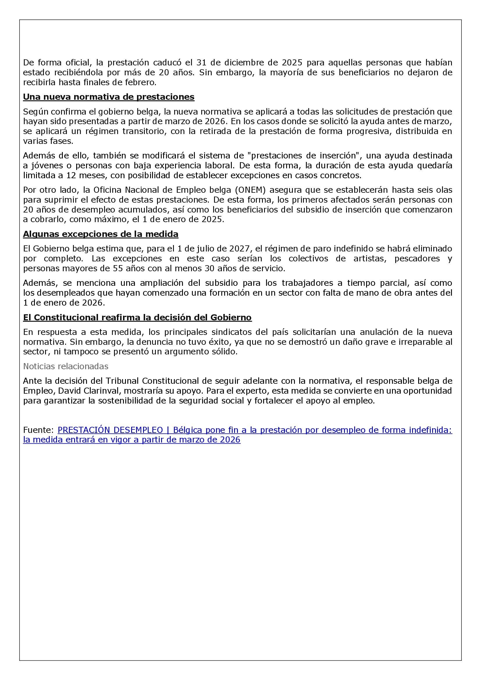 BÉLGICA PONE FIN A LA PRESTACIÓN POR DESEMPLEO DE FORMA INDEFINIDA: LA MEDIDA ENTRARÁ EN VIGOR A PARTIR DE MARZO DE 2026
