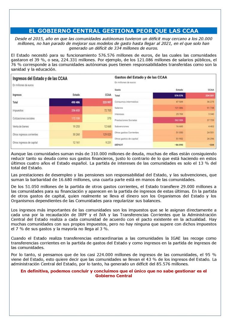 EL GOBIERNO CENTRAL GESTIONA PEOR QUE LAS CCAA