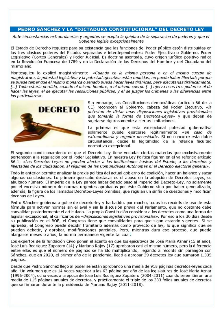 PEDRO SÁNCHEZ Y LA “DICTADURA CONSTITUCIONAL” DEL DECRETO LEY