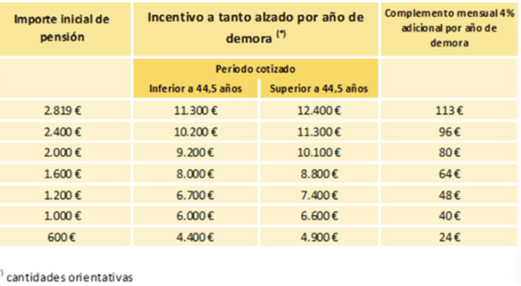 - Cada año trabajado después de la edad ordinaria suma un 4 % adicional a la pensión.