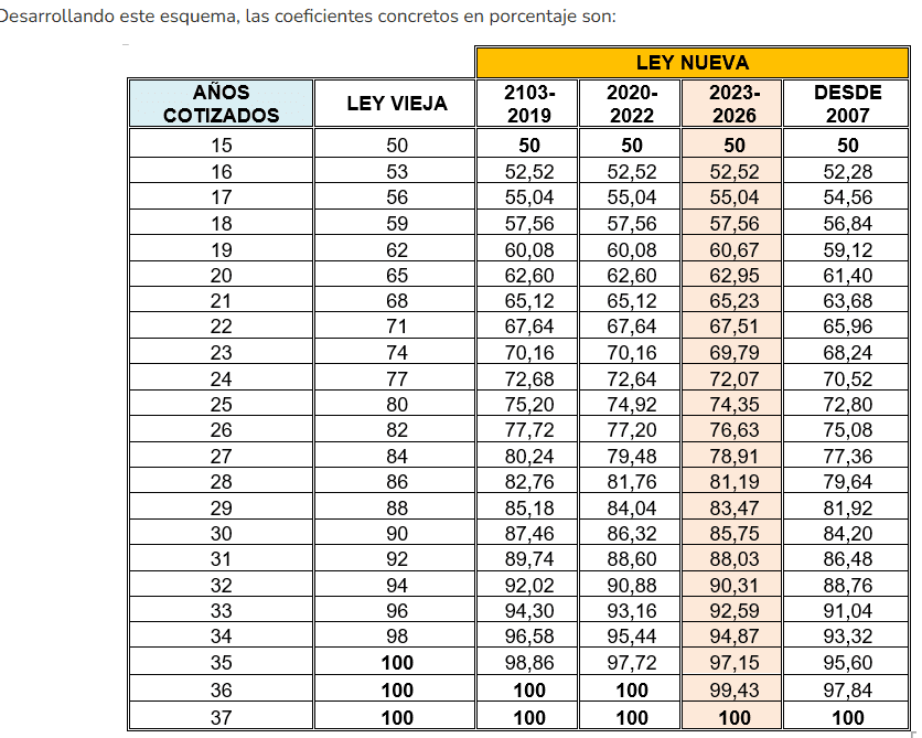 - Con 15 años cotizados se tiene derecho al 50%. A partir de ahí, cada mes adicional suma un porcentaje progresivo hasta alcanzar el 100%. En 2025, se necesita haber cotizado 36 años y 8 meses para acceder al 100 %. En 2027 serán necesarios 37 años.