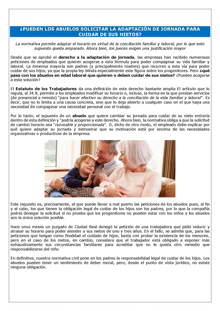 ¿PUEDEN LOS ABUELOS SOLICITAR LA ADAPTACIÓN DE JORNADA PARA CUIDAR DE SUS NIETOS?