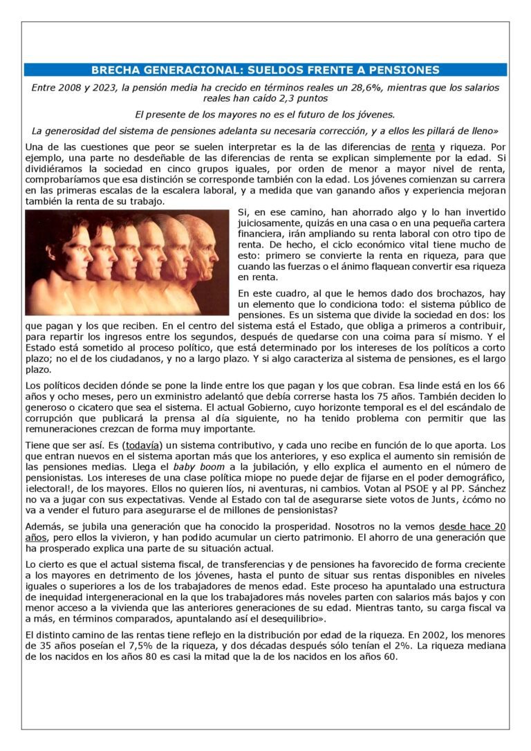 BRECHA GENERACIONAL: SUELDOS FRENTE A PENSIONES