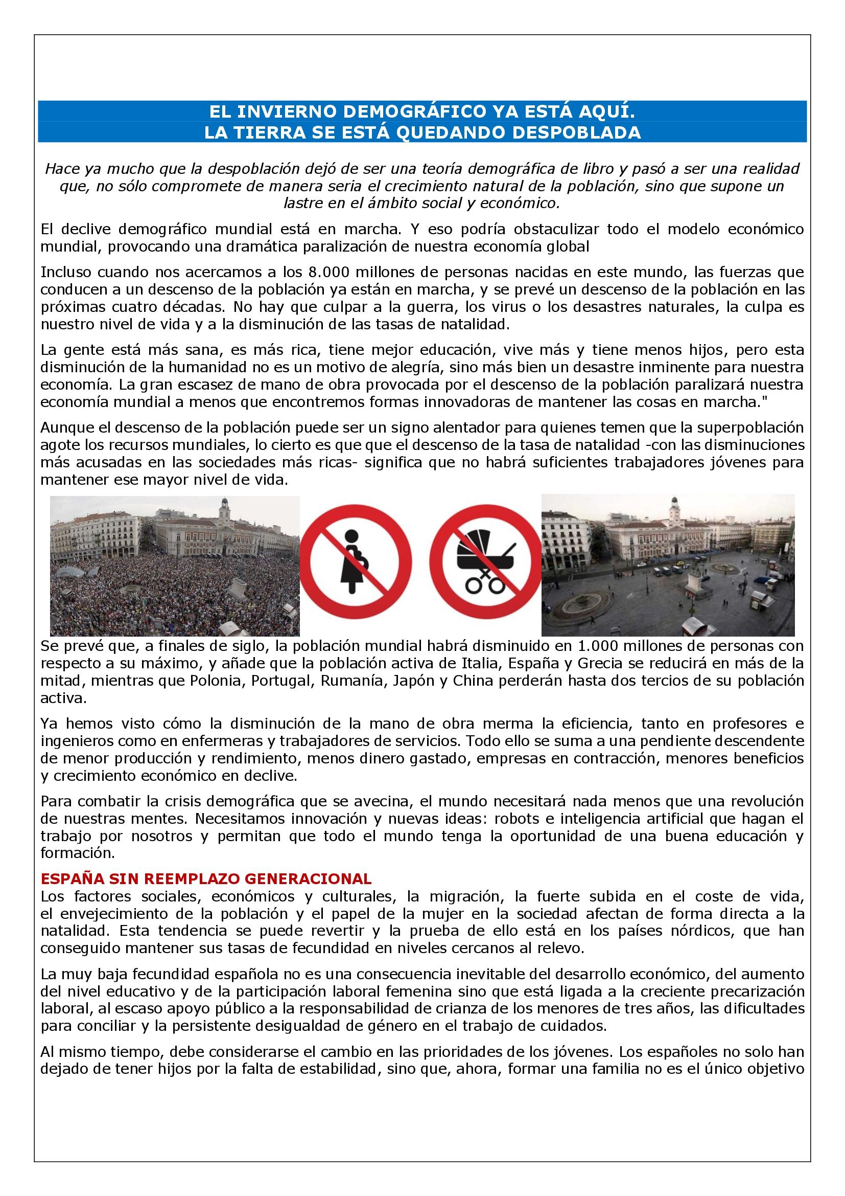 ESPAÑA SIN REEMPLAZO GENERACIONAL