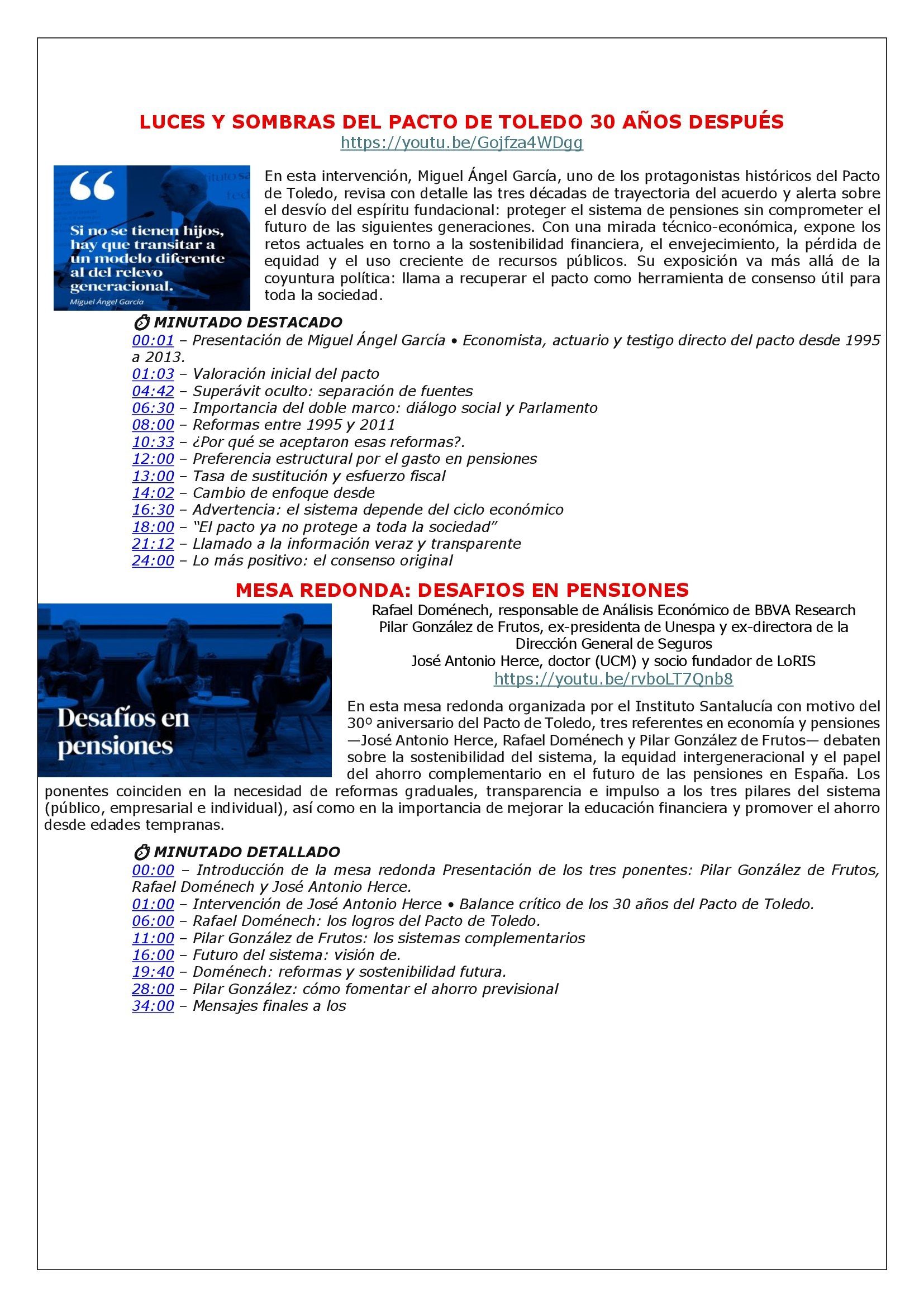 00:01 – Presentación de Octavio Granado • Participación clave en el diseño y evolución del pacto. • “Lo mejor que le ha pasado al sistema de pensiones es el Pacto de Toledo”.