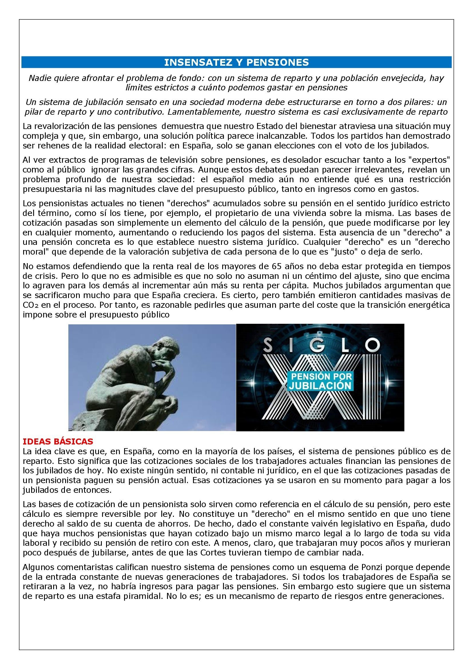 Como sociedad, la pregunta fundamental es: dado nuestro PIB total, ¿cuánto deberíamos gastar en pensiones y otras prestaciones contributivas y no contributivas? ¿El 15% del PIB? ¿El 25%? ¿El 50%? Cada euro extra destinado a pensiones es un euro que no se puede usar en otro ámbito, y su valor debe medirse según su mejor alternativa posible. España puede elegir entre la insensatez del PSOE y el PP (que en este tema son indistinguibles) o la racionalidad. Tristemente, con casi total seguridad, elegiremos la insensatez.