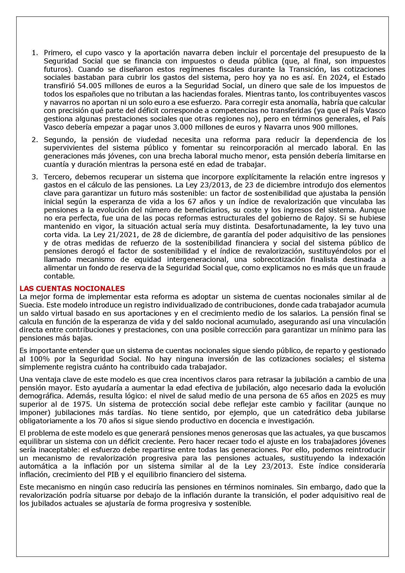 - Ni un solo euro en prestaciones no contributivas. Esto es absolutamente clave. Una y otra vez se repite en prensa y televisión que el déficit del sistema público de pensiones proviene de las prestaciones no contributivas, pero esto es rotundamente falso.