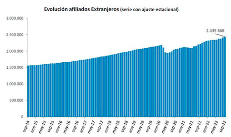 Si tomamos como referencia febrero de 2020, antes del impacto de la pandemia, el sistema registra un aumento de más de 250.000 trabajadores foráneos.
