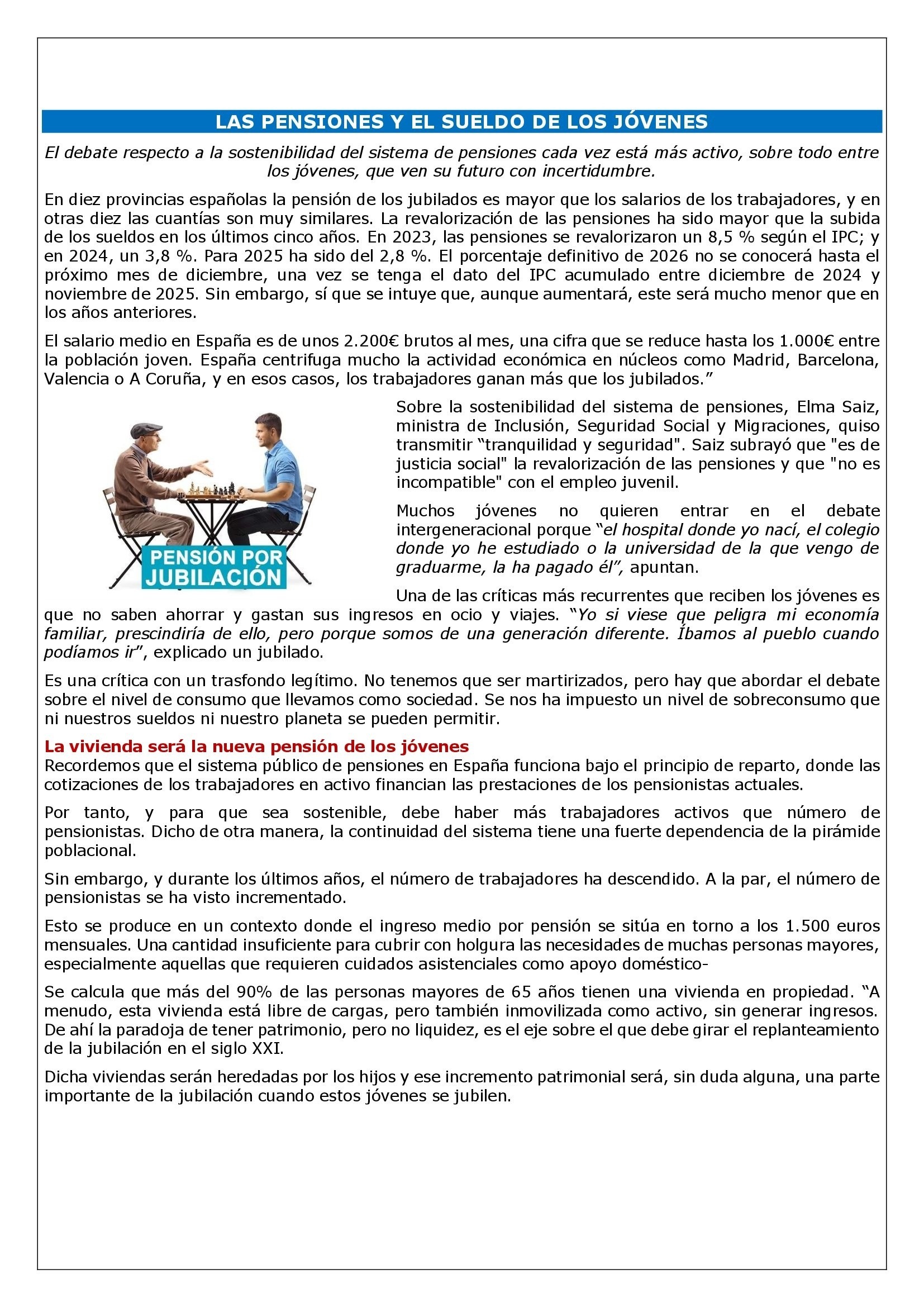 En diez provincias españolas la pensión de los jubilados es mayor que los salarios de los trabajadores, y en otras diez las cuantías son muy similares. La revalorización de las pensiones ha sido mayor que la subida de los sueldos en los últimos cinco años. En 2023, las pensiones se revalorizaron un 8,5 % según el IPC; y en 2024, un 3,8 %. Para 2025 ha sido del 2,8 %. El porcentaje definitivo de 2026 no se conocerá hasta el próximo mes de diciembre, una vez se tenga el dato del IPC acumulado entre diciembre de 2024 y noviembre de 2025. Sin embargo, sí que se intuye que, aunque aumentará, este será mucho menor que en los años anteriores.