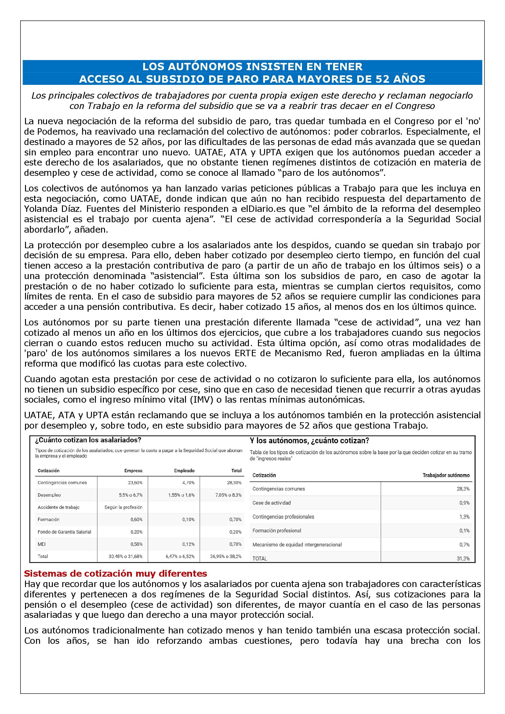 Fuente: eldiario.es Los autónomos piden tener acceso al subsidio de paro para mayores de 52 años (eldiario.es)