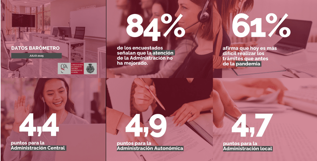 Los Gestores Administrativos puntúan con un 4,4 el funcionamiento de la Administración Central, con un 4,9 el de las administraciones autonómicas y con un 4,7 el de las locales.