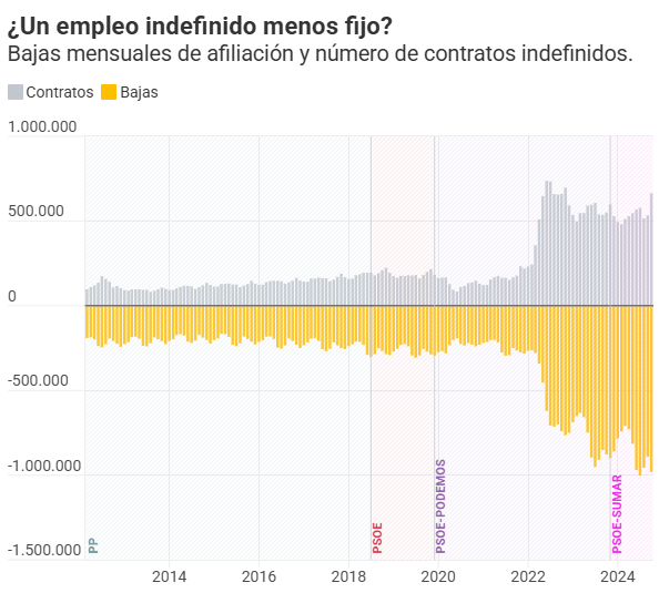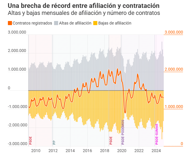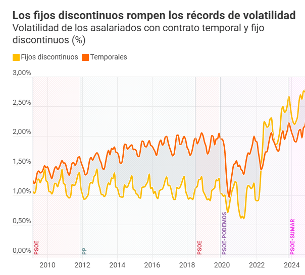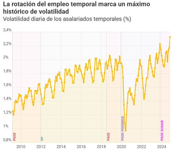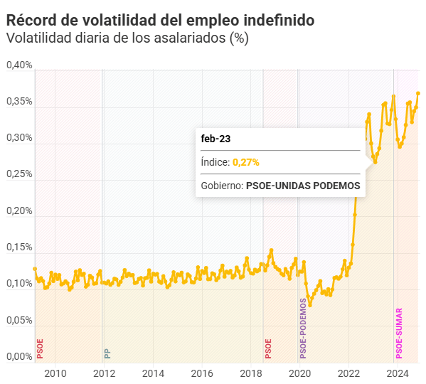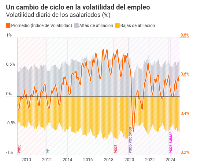 En noviembre de 2024, el índice de volatilidad había retrocedido a niveles de 2013, con más afiliados y sin sombra de ningún tipo de crisis. De hecho, todas las previsiones hablan de un repunte intenso del PIB. Con lo cual, el veredicto parece inapelable: los empleos asalariados han mejorado su estabilidad notablemente.