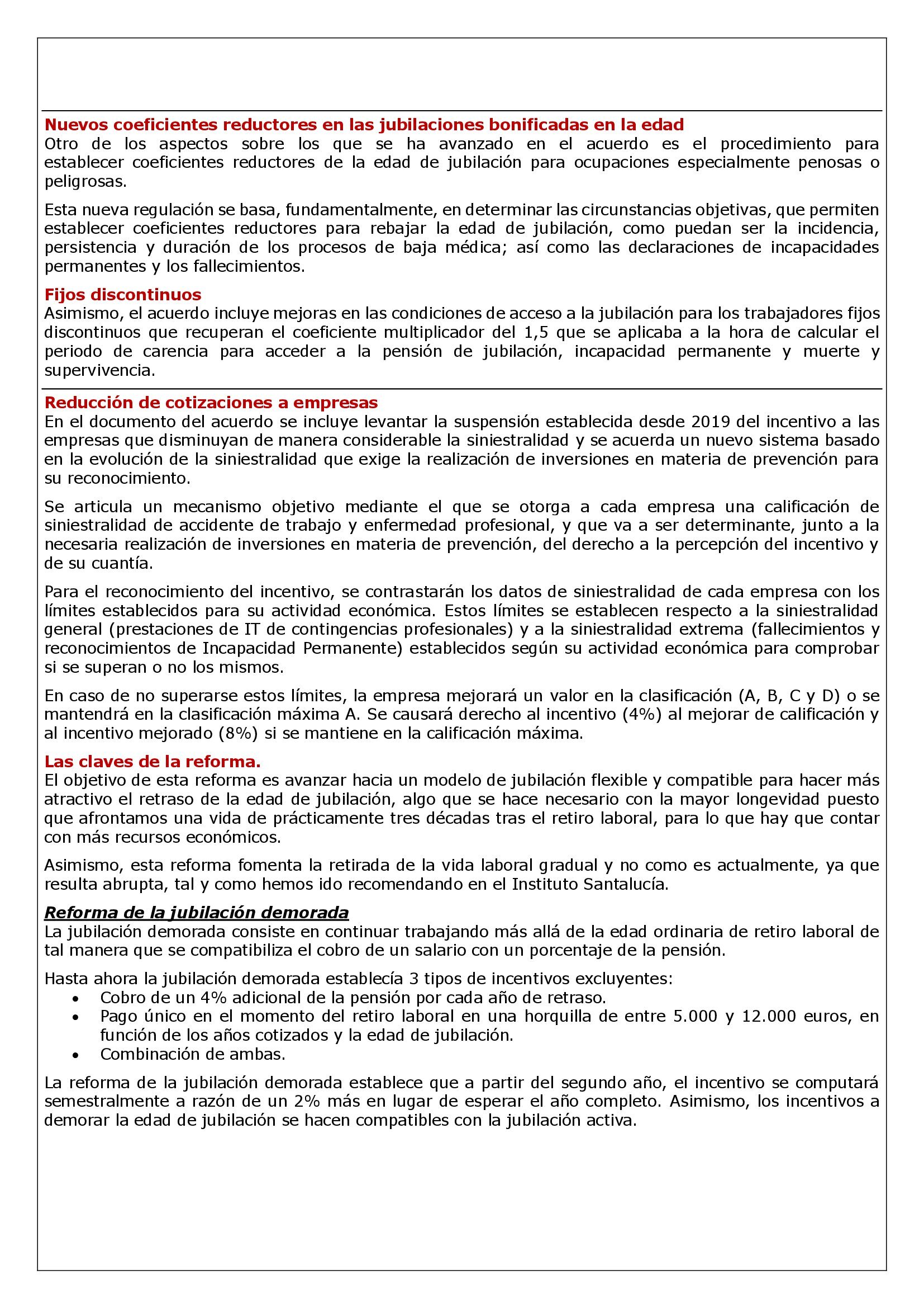 También se incluye en el acuerdo un punto para recuperar el coeficiente multiplicador del 1,5 aplicable al tiempo cotizado para evitar perjuicios para los contratos fijos discontinuos, al ser una modalidad contractual que alterna periodos de trabajo con periodos de inactividad.