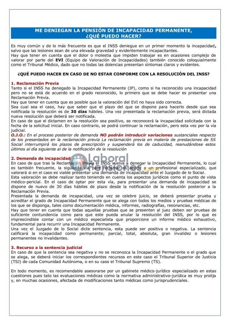 ME DENIEGAN LA PENSIÓN DE INCAPACIDAD PERMANENTE, ¿QUÉ PUEDO HACER?