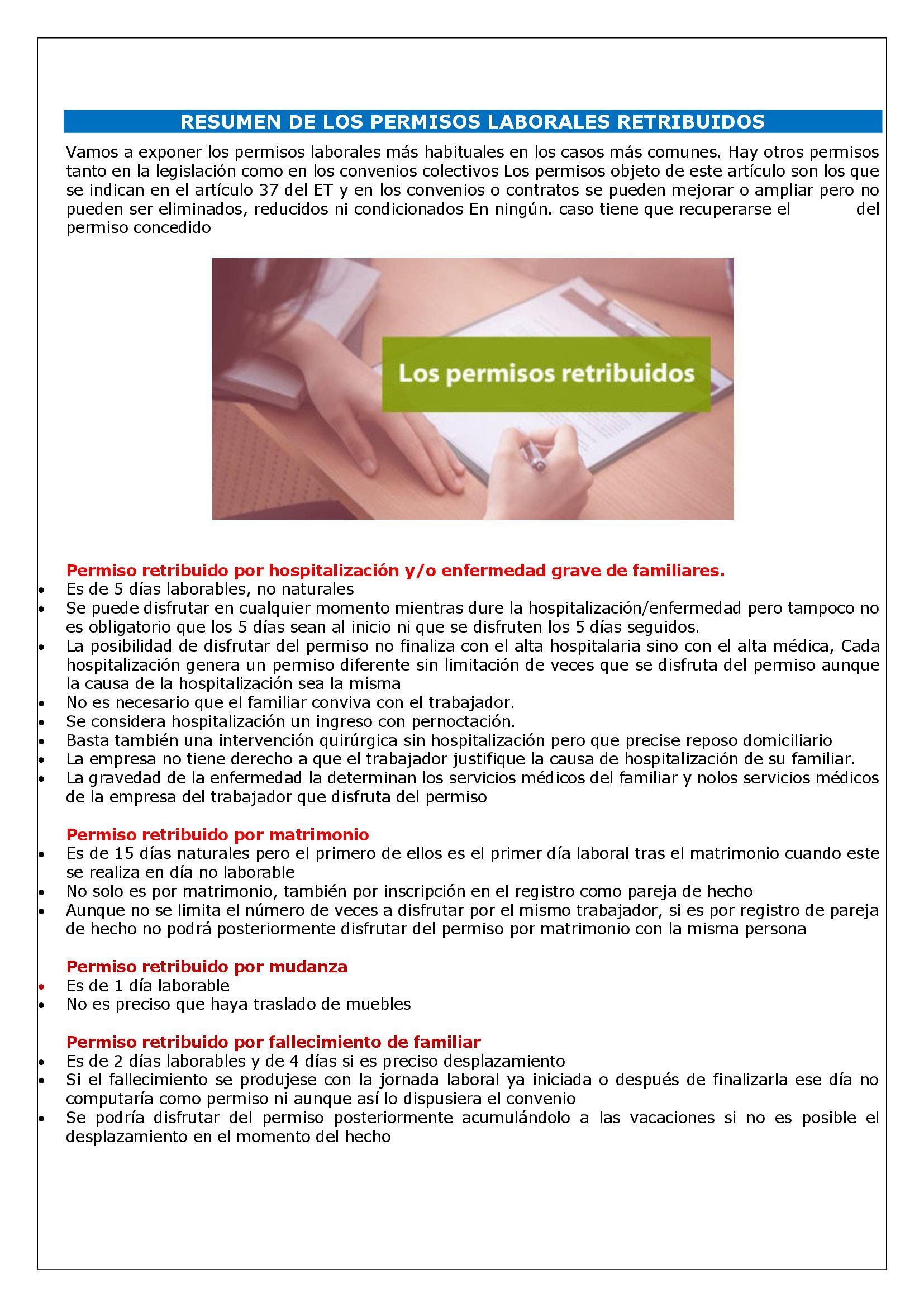 Vamos a exponer los permisos laborales más habituales en los casos más comunes. Hay otros permisos tanto en la legislación como en los convenios colectivos Los permisos objeto de este artículo son los que se indican en el artículo 37 del ET y en los convenios o contratos se pueden mejorar o ampliar pero no pueden ser eliminados, reducidos ni condicionados En ningún. caso tiene que recuperarse el tiempo del permiso concedido
