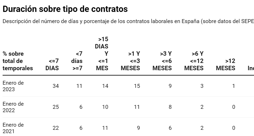 Además, la duración media de los días contratados se queda en 51,82, que son exactamente dos días menos que la que teníamos en 2021 y, uno menos con respecto a 2022.