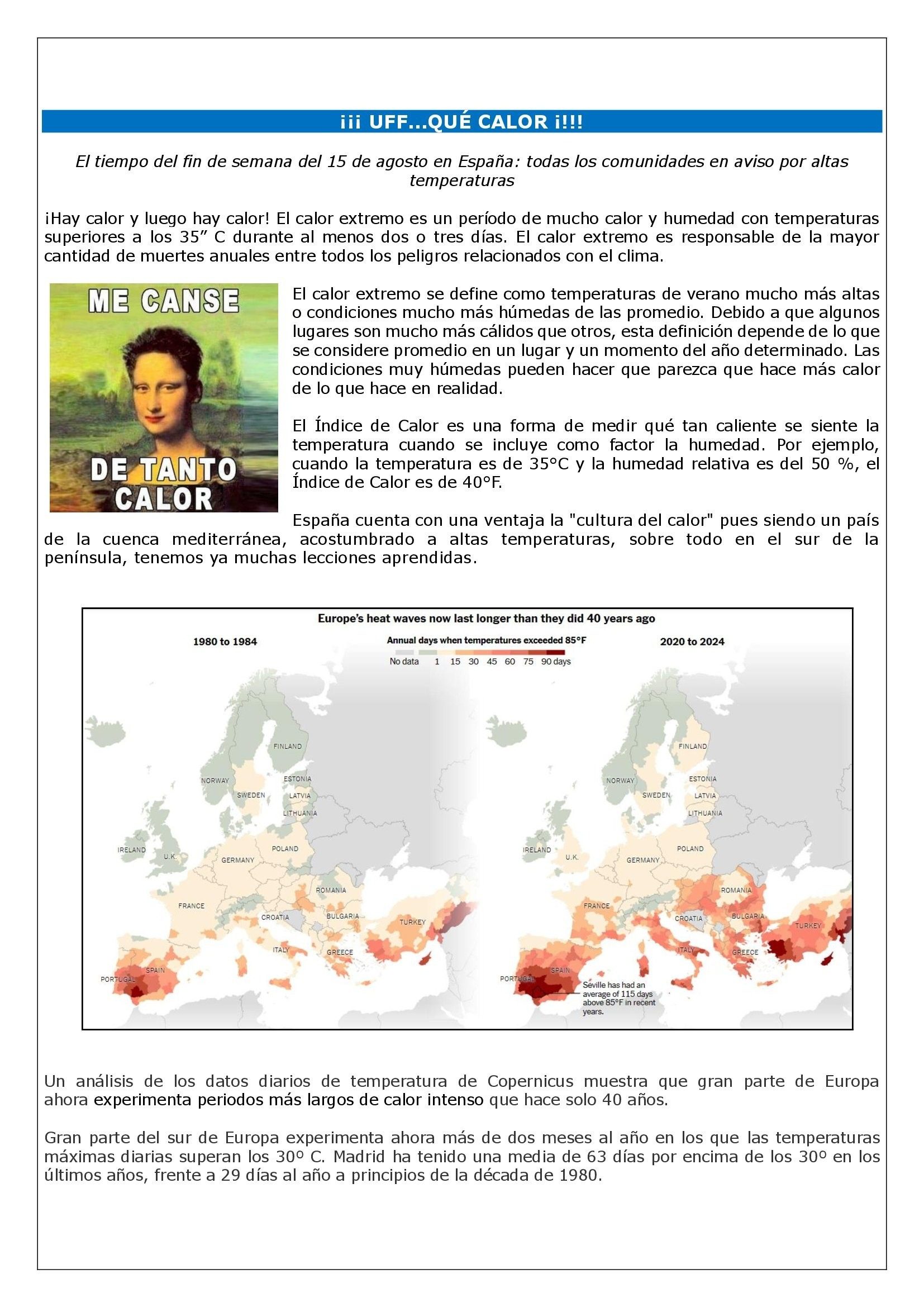 España cuenta con una ventaja la «cultura del calor» pues siendo un país de la cuenca mediterránea, acostumbrado a altas temperaturas, sobre todo en el sur de la península, tenemos ya muchas lecciones aprendidas.