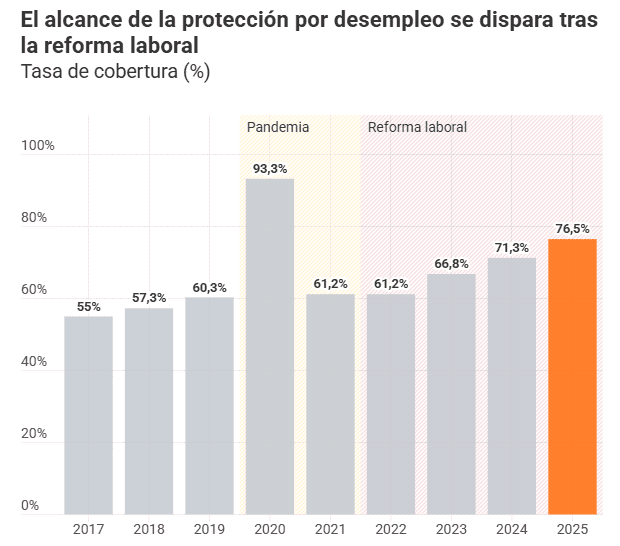 La tasa de cobertura de las prestaciones sube 15 puntos tras la reforma laboral