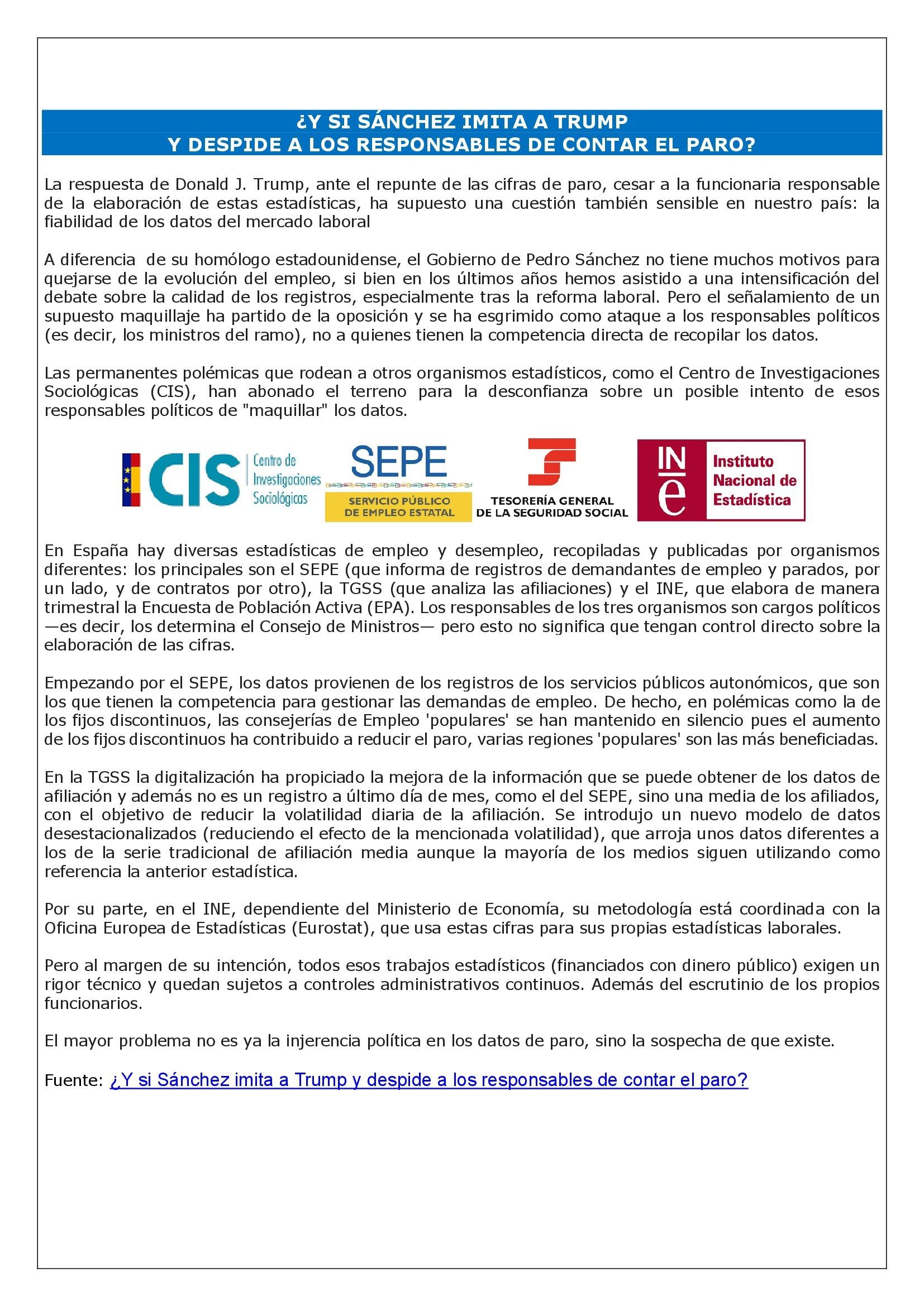 Fuente: ¿Y si Sánchez imita a Trump y despide a los responsables de contar el paro?