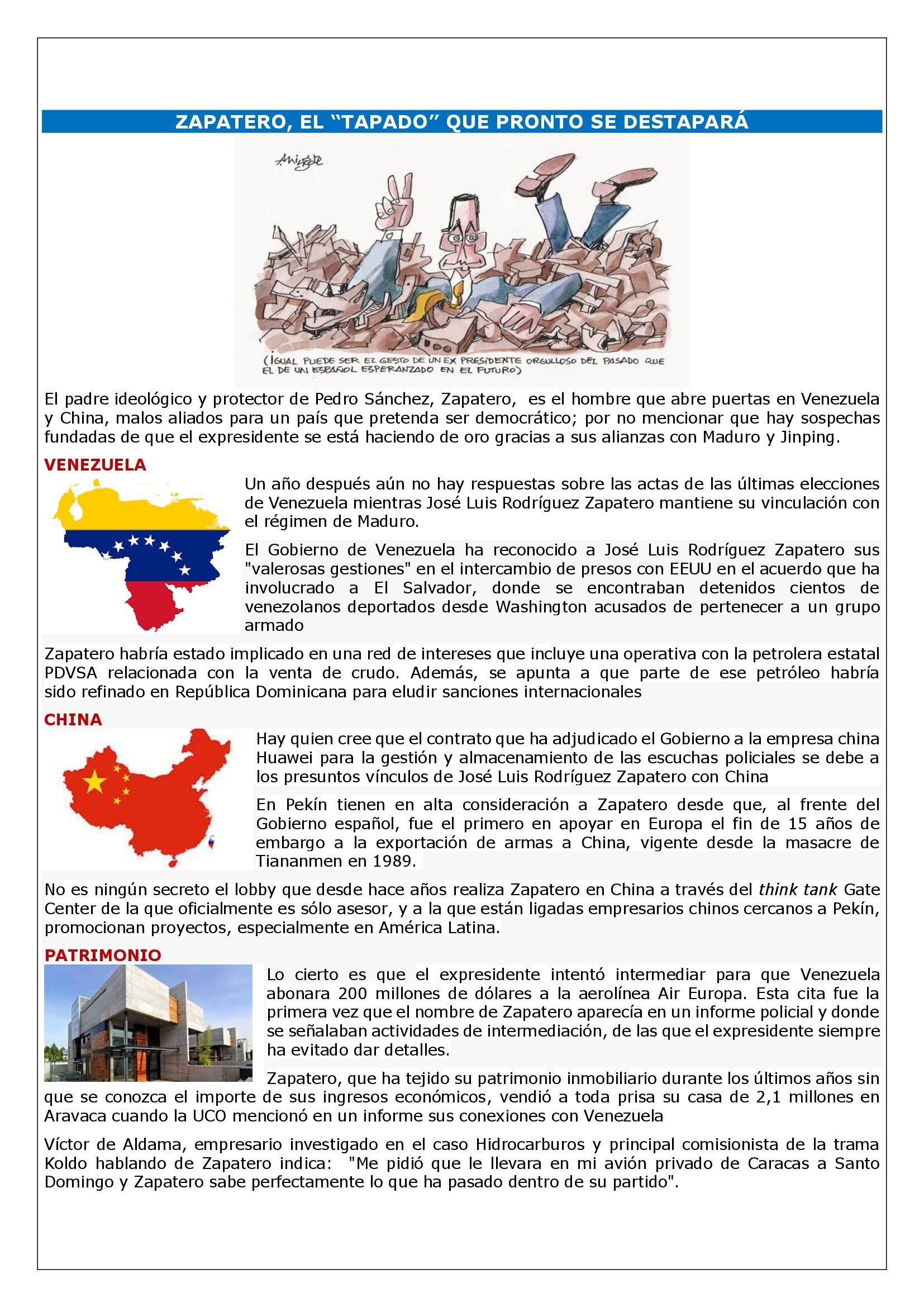 El padre ideológico y protector de Pedro Sánchez, Zapatero, es el hombre que abre puertas en Venezuela y China, malos aliados para un país que pretenda ser democrático; por no mencionar que hay sospechas fundadas de que el expresidente se está haciendo de oro gracias a sus alianzas con Maduro y Jinping.